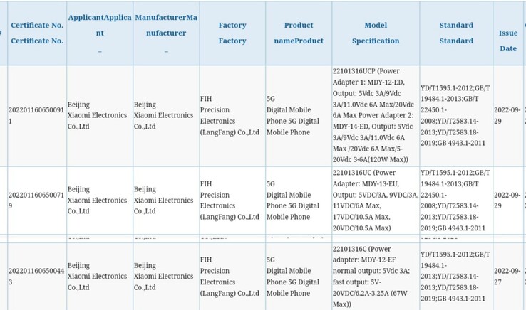 Dựa trên thông tin mà 3C đã cung cấp trong mục ‘Thông số kỹ thuật’, 22101316UC sẽ hỗ trợ sạc nhanh lên đến 210W, với bộ chuyển đổi nguồn MDY-13-EU có khả năng cung cấp 20 V / 10.5 A. Thiết bị này hiện được cho là Redmi Note 12 Pro Plus, sự xuất hiện của 22101316UG tại EEC ngầm xác nhận rằng sạc nhanh 210W cũng sẽ được trang bị ngoài thị trường Trung Quốc. Ngược lại, 22101316UCP sẽ hỗ trợ sạc 120W, đây có khả năng là mẫu Redmi Note 12 Pro. Ngoài ra, còn có 22101316C, Smartphone có mức sạc nhanh 67 W.